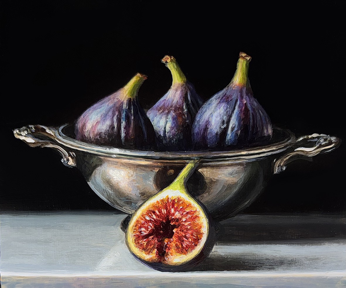 Fig in Silver Bowl on Marble